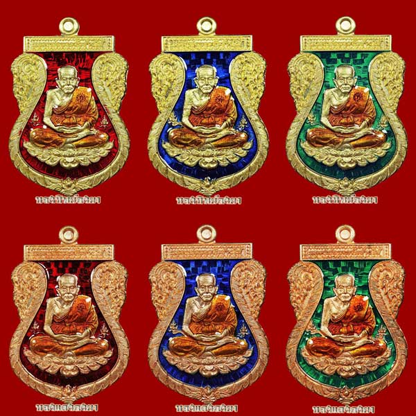 2.เนื้อทองทิพย์ลงยา พื้นแดง พื้นน้ำเงิน พื้นเขียว จีวรเหลือง(1 ชุด 3เหรียญ) มียอด 1 ชุดๆละ 1,500บาท