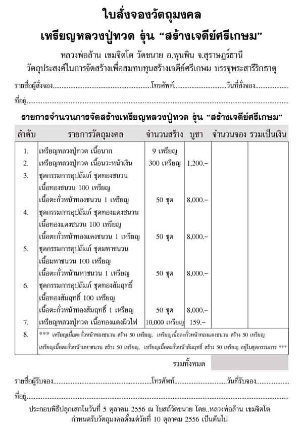 ชุดกรรมการอุปถัมภ์ทองชนวน สร้าง 50 ชุด บูชา 8000 บาท มียอด 1 ชุด ราคาพิเศษ 6000 บาท