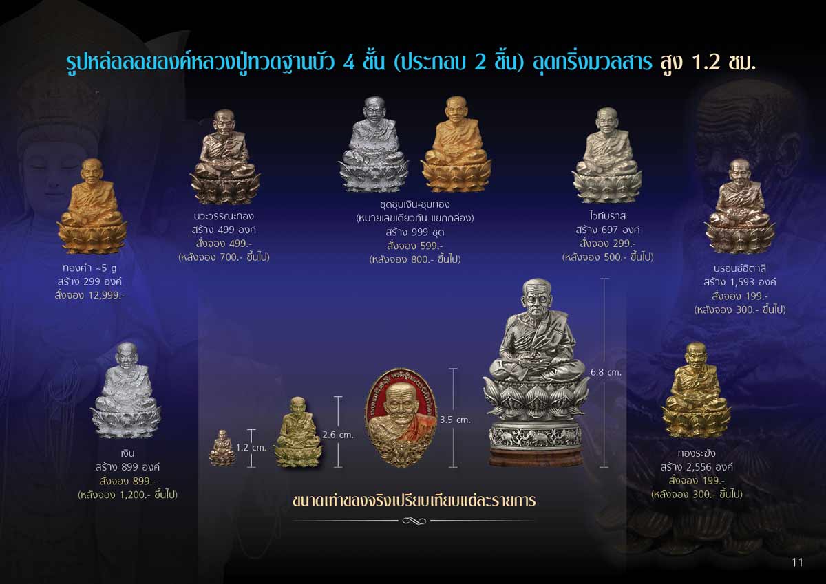 กับนวตกรรมใหม่งานประกอบ 4-6 ชิ้น สำหรับงานประเภทเหรียญและรูปหล่อลอยองค์งานประกอบ 2 ชิ้น ทั้งหมดทั้งปวง บอกได้เลยว่างามทางพุทธศิลป์ ประกอบพิธีที่ยิ่งใหญ่หลายวาระ จึงรับรองได้ว่าเต็มเปี่ยมด้านพุทธคุณ อีกด้านแน่นอน.....