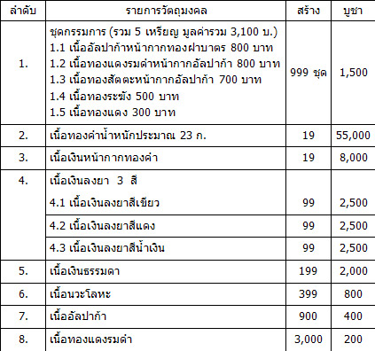 วัตถุประสงค์ในการจัดสร้าง : เพื่อบูรณะเสนาสนะภายในวัดห้วยเงาะ และสมทบกองทุนรักษาพยาบาลพ่อท่านเขียว