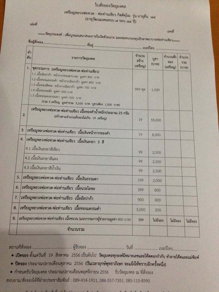 รายการที่นำมาเปิดจองมีดังนี้ครับ
