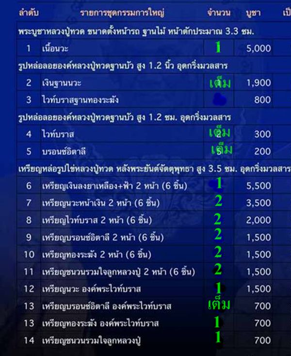 1.เนื้อนวะโลหะ 1 องค์ บูชา 5000 บาท