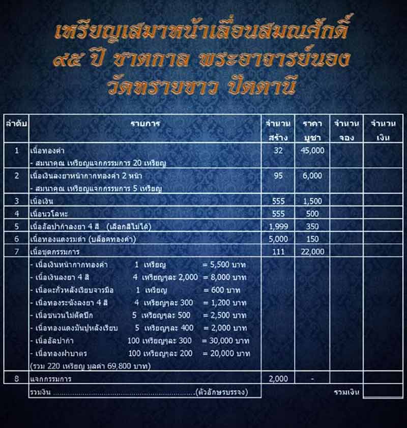 เหรียญแจกกรรมการ เหรียญละ 500 บาท..........มี ยอด 5 เหรียญ (วัดดวง ยังไม่ทราบว่าเป็นเหรียญเนื้ออะไรครับ)