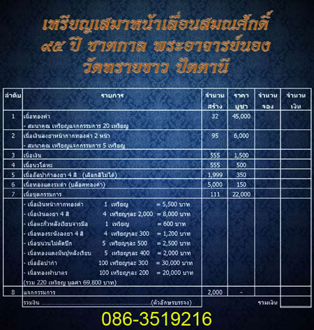 ท่านที่สนใจโทร.สอบถามได้ครับ สมชาย พระเครื่อง โทร.087-9359198 ได้ยอดจากศูนย์จองลพบุรีครับ