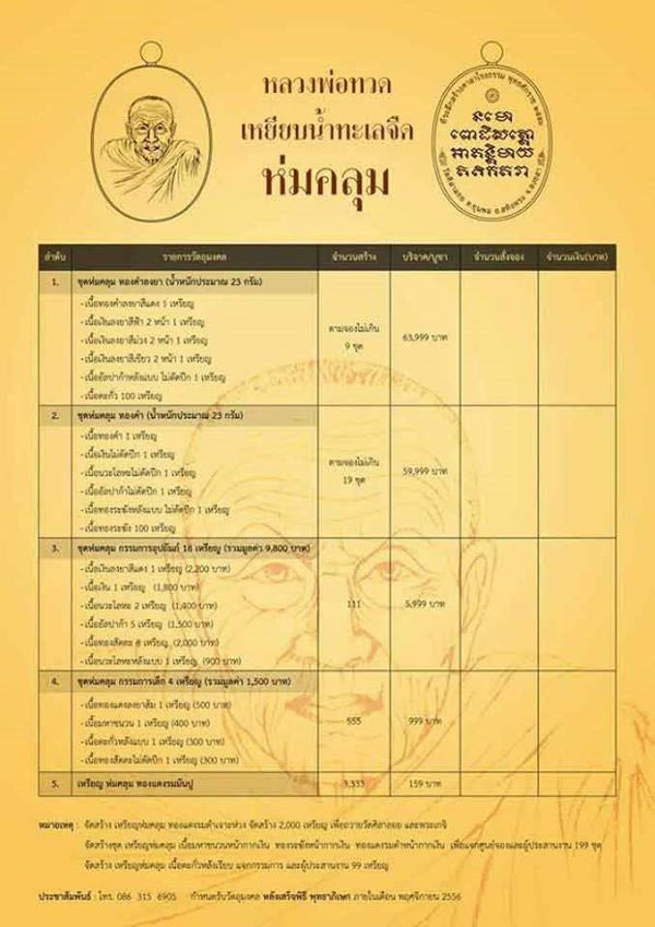 1. กรรมการอุปถัม 1 ชุด + กรรมการเล็ก 1 ชุด+ทองแดงมันปู 20 เหรียญ (รวมรับพระ 44 เหรียญ) มียอด 1 ชุด