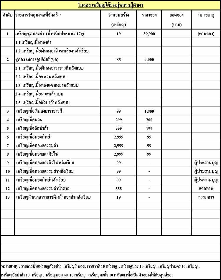 1.เนื้อทองคำ จำนวนการสร้าง 19 เหรียญ ราคาจอง 39,900 บ.
