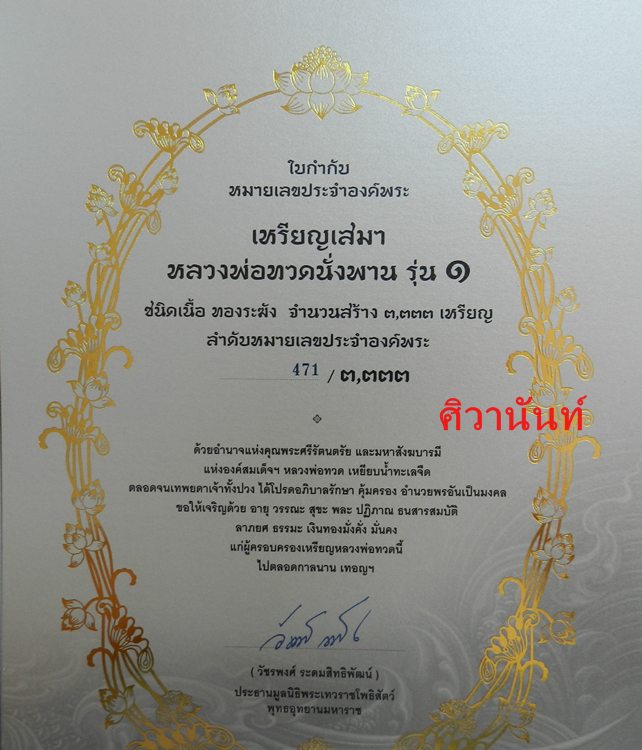 - เนื้อทองระฆัง มี 1 เหรียญ หมายเลข 471