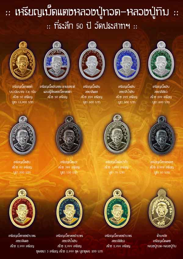รายการจำนวนการจัดสร้างเหรียญเสมาหน้าเลื่อน ที่ระลึก 50 ปี วัดประสาทฯ