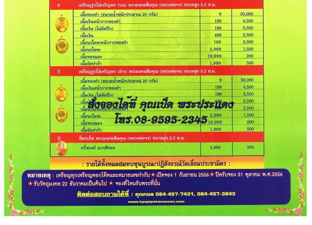 - เนื้อเงิน ราคา 3,000 บาท มียอด 20 องค์