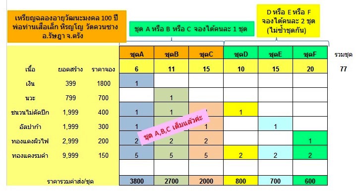 ชุด A,B และ C ยอดเต็มไปแล้วนะคะ เหลือแค่ชุด D,E และ F และมีอยู่เหลืออยู่ไม่มากแล้วค่ะ สนใจคงต้องรีบแล้วนะคะ...