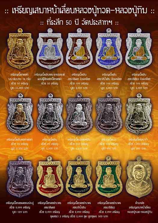 รายการจำนวนการจัดสร้างเหรียญเสมาหน้าเลื่อน ที่ระลึก 50 ปี วัดประสาทฯ
