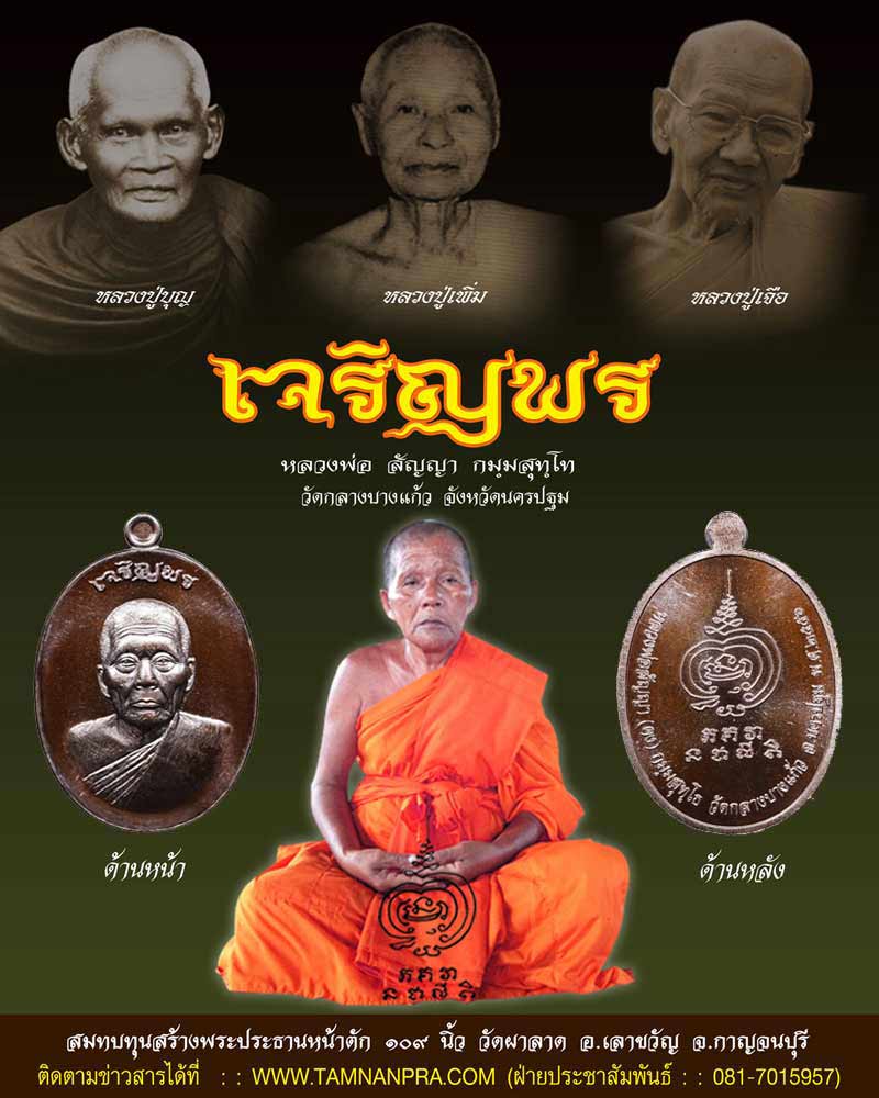 เหรียญเจริญพร พระอาจารย์สัญญา (หลวงพ่อคง กมฺมสุทฺโธ) วัดกลางบางแก้ว จ.นครปฐม