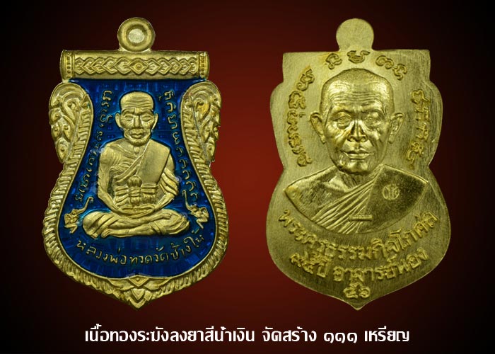 -เนื้อทองระฆังลงยา(เลือกสีไม่ได้) 1 เหรียญ+ทองแดงมันปูหลังเรียบ 1 เหรียญ(อยู่ในชุดกรรมการ)