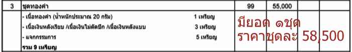 ชุดทองคำ มียอด ๑ ชุด ราคา ชุดละ 58,500 บาท ฟรีค่าจัดส่ง