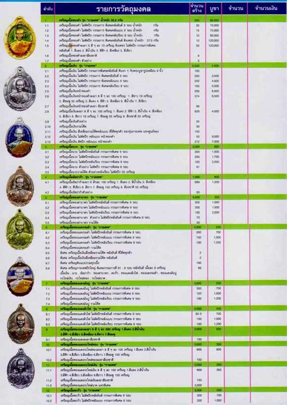 - เหรียญเนื้อทองคำ บูชาเหรียญละ 60,000 บาท มีจำนวน 1 เหรียญ
