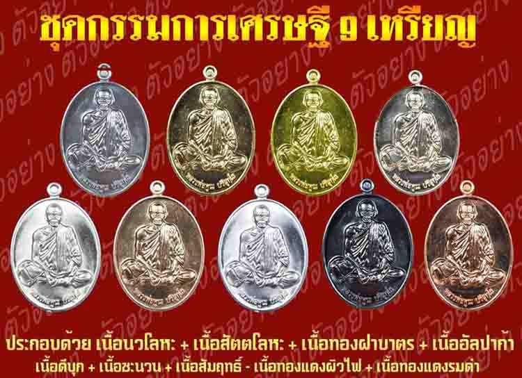 และมีชุดเหรียญกรรมการเศรษฐี ๙ เหรียญ ๙ เนื้อ (ชุดที่แถมมากับพระบูชาขนาดหน้าตัก ๕ นิ้ว เนื้อบรอนซ์ จำนน ๕ ชุด) แต่แบ่งให้บูชา ๓ ชุดเท่านั้น (กล่องสีน้ำเงิน โค้ดกรรมการ) ซึ่งสร้างน้อยมาก