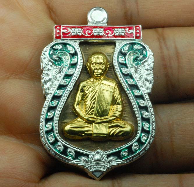 เหรียญเนื้ออัลปาก้าองค์ทองระฆังลงยา 2 สี มี 5 องค์ๆละ 1100 บาท