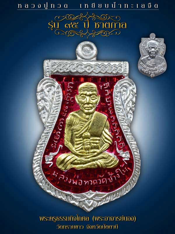 เหรียญเสมาหน้าเลื่อน หลวงพ่อทวด ชาตกาล 95 ปี อาจารย์นอง เนื้อเงินลงยาหน้กกากทองคำ 2 หน้า ไม่ทราบสี มีเหรียญเดียวโดดๆ เป็นรายการหายากไม่มีใครออกเลยครับ ประเดิม เลยครับ 20000 บาทถ้วย