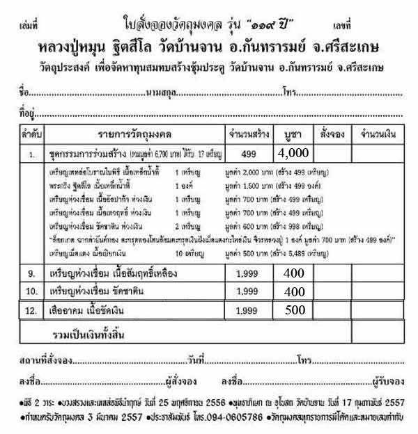 วัตถุมงคลรุ่น " 119 ปี หลวงปู่หมุน วัดบ้านจาน จ.ศรีสะเกษ