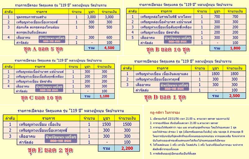มีพร้อมพระเครื่องเปิดจอง วัตถุมงคล รุ่น 119 ปี หลวงปู่หมุน วัดบ้านจาน ครับ