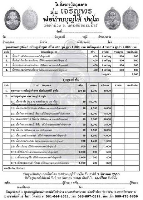 หัวข้อกระทู้ : เปิดจอง เหรียญเจริญพร พ่อท่านบุญให้ วัดท่าม่วง จ.นครศรีธรรมราช