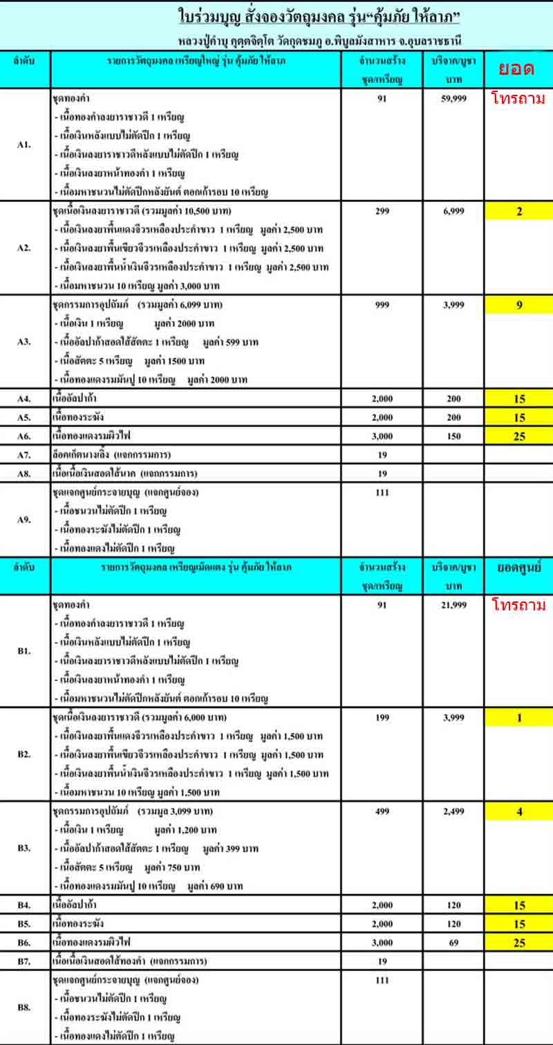 ยอดจองมีตามรายการที่ลงไว้เลยครับ ยอดได้ตามจำนวนที่ลงไว้ครับ