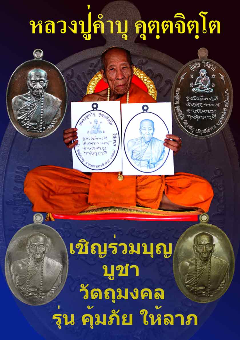 ขอเชิญร่วมบุญสั่งจองวัตถุมงคลรุ่นคุ้มภัย ให้ลาภ หลวงปู่คำบุ คุตฺตจิตฺโต