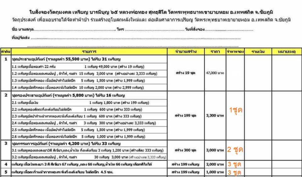 ชุดที่ 2 มียอด 1 ชุด ราคา ชุดละ 6000