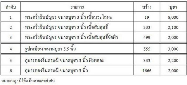 4. รูปเหมือน ขนาดบูชา 5.5" สร้าง 555 องค์ มียอด 3 องค์ ๆ ละ 5,000 บาท