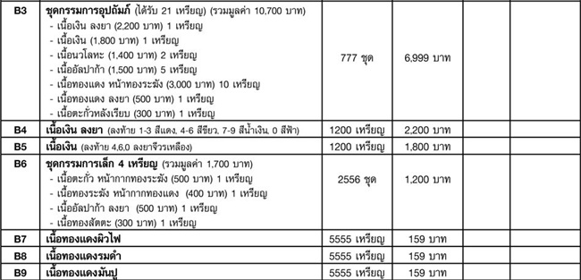 รายการชุดที่ 2 แยกจากชุดกรรมการเล็ก (B6) ราคาชุดละ 1,200 บาท ต่อชุดมี 3 เหรียญ มียอด 2 ชุด มีรายการดังนี้