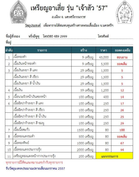 วัตถุประสงค์ เพื่อหารายได้สมทบทุนสร้างศาลพระเสื้อเมือง จ.นครศรีฯ