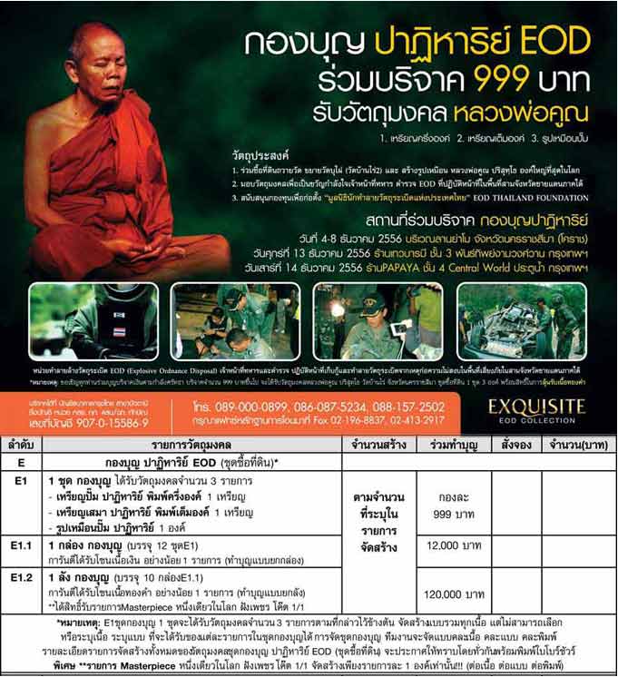 5. ชุดกองบุญ ซื้อที่ดิน รับพระจำนวน 3 องค์ บูชาชุดละ 1,150 บาท เปิดจองจำนวน 10 ชุด