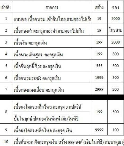 1.ช่อชนวนเข้าดินไทย บูชา 5,000 บาท โทรสอบถาม