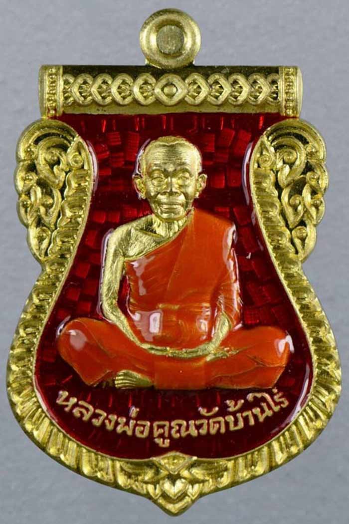 เหรียญเสมาหน้าเลื่อนฯ "นิรันตรายเหนือดวง" ลพ.คูณ ปริสุทโธ เนื้อทองระฆังลงยา