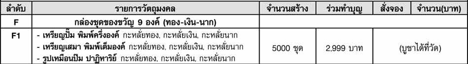 F1 ชุดกล่องของขวัญ 9 องค์ (ทอง-เงิน-นาก) มียอด 20 ชุด ราคาชุดละ 3900 **ฟรีค่าส่ง**