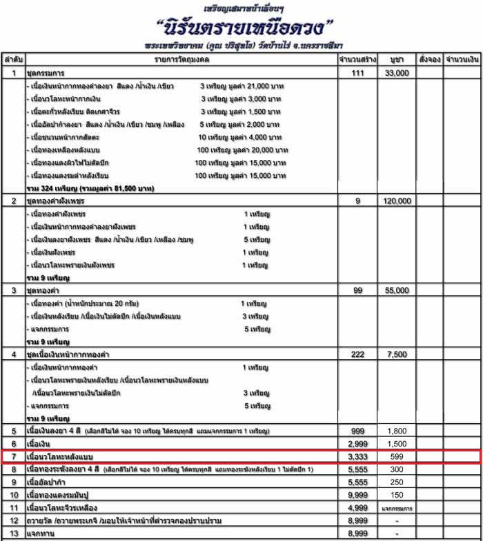7. เนื้อนวะโลหะหลังแบบ มี 2 เหรียญ เหรียญละ 1,000.-