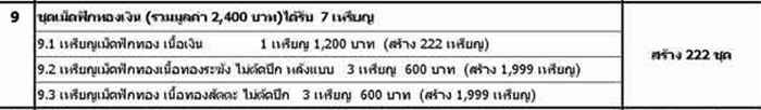 รายการที่ 9. ชุดเม็ดฟักทองเงิน ได้รับพระ 7 เหรียญ