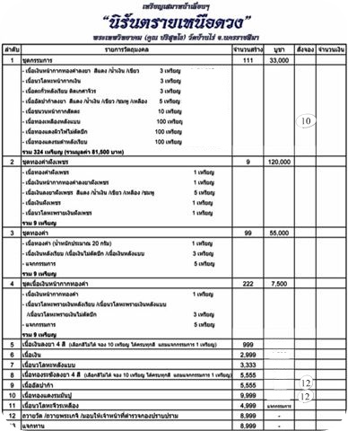 - เนื้อทองเหลืองหลังแบบ มี 5 เหรียญ เหรียญละ 350 บาท
