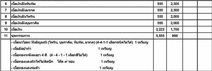 รายการที่ 11 ชุดกรรมการ มีแบ่ง 8 ชุด ๆละ 1,400 บาท ( รวม 5 เหรียญต่อชุด )