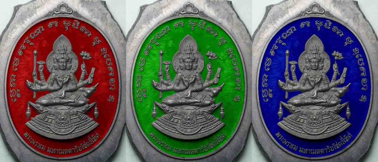 3. เงินลงยา สร้าง 99 เหรียญ (สีละ 33 เหรียญ) เหรียญละ 1,800 บาท มียอดสีละ 1 เหรียญ