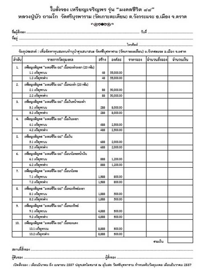รายการที่ 10. เหรียญเจริญพร บน-ล่าง มี 2 ชุด ชุดละ 2,500 บาท