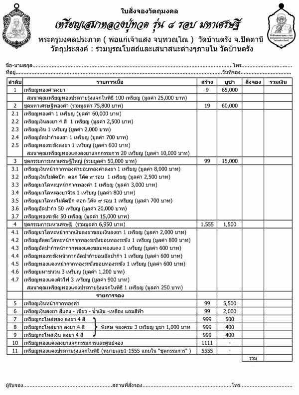 วัตถุประสงค์: ร่วมบูรณโบสถ์และเสนาสนะต่างๆภายในวัดบ้านตรัง