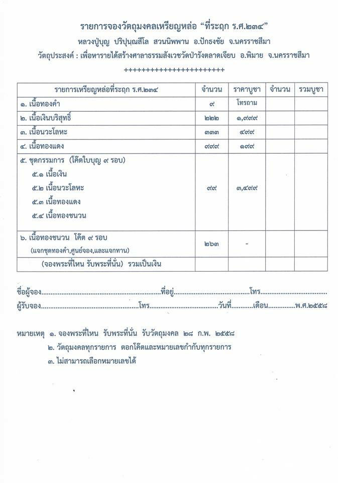 เปิดจองเหรียญหล่อ " ที่ระฤก ร.ศ.๒๓๔ " หลวงปู่บุญ สวนนิพพาน วัดปอแดง อ.ปักธงชัย จ.นครราชสีมา