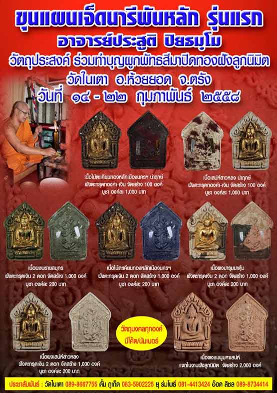 เปิดจองขุนแผนเจ็ดนารีพันหลัก รุ่นแรก อ.ประสูติ วัดในเตา จ.ตรัง
