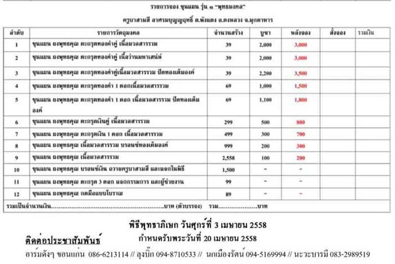 เปิดจอง ขุนแผน พุทธมงคล รุ่น ๑ ครูบาสามสี