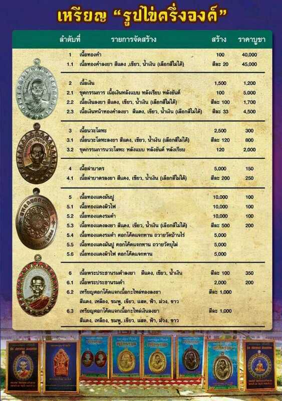 3.2 เนื้อนวะกรรมการ หลังแบบ หลังยันต์ หลังเรียบ มียอด 1 ชุด ๆละ 2,000 บาท
