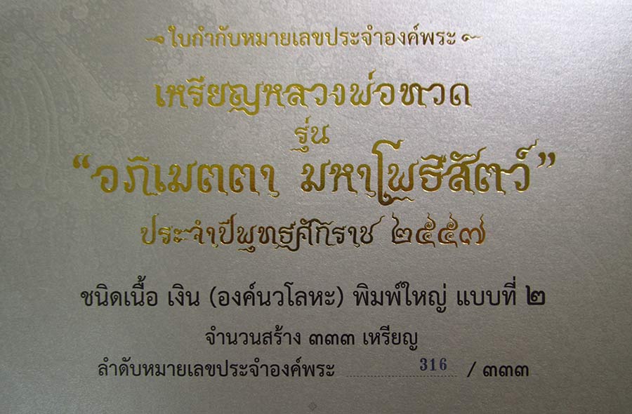 "เนื้อเงินองค์นวะโลหะ" ( จัดสร้าง 333 องค์ )