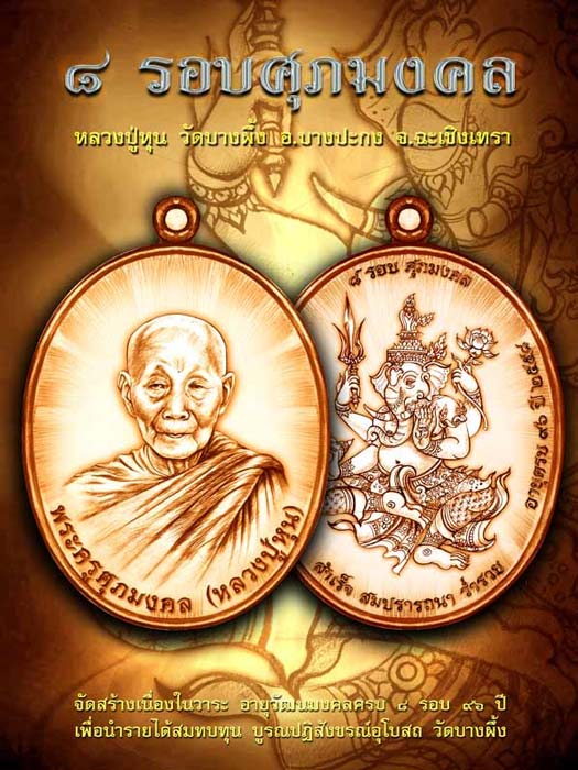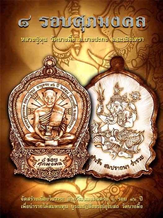 ขอเชิญร่วมทำบุญ จองเหรียญ ๘ รอบศุภมงคล หลวงปู่หุน วัดบางผึ้ง จ.ฉะเชิงเทรา