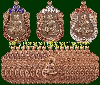 หลวงพ่อคูณ รุ่นเพชรบูรพา พิมพ์เสมา ชุดทองแดงยกชุด ได้รับพระ 18 เหรียญ