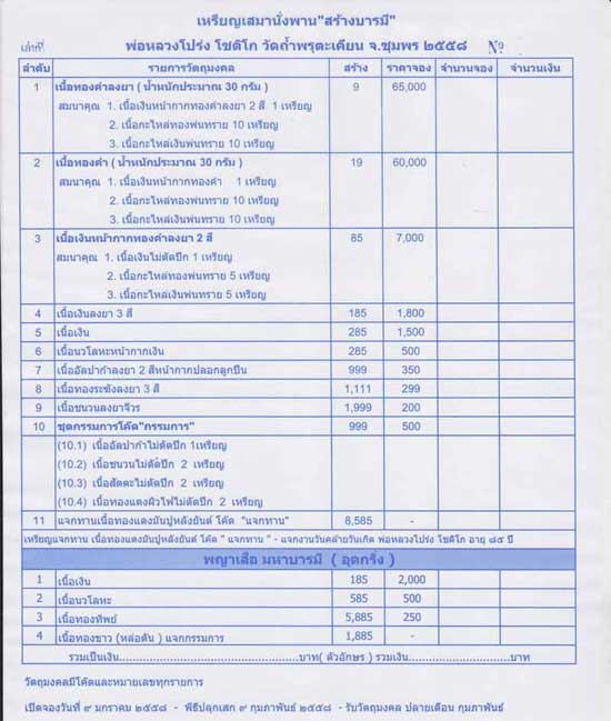 9.เนื้อชนวนลงยาจีวร มีจำนวน 10 เหรียญๆละ 200 บาท